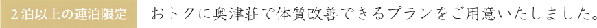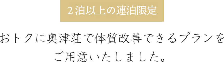 当館では、多くのお客様に体質の改善を感じていただきたいと、連泊プランをご用意しております。